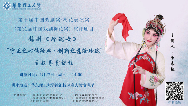 在上海市艺术教育委员会、上海市科技艺术教育中心、上海市艺术教育协会的支持下,江苏省演艺集团锡剧团经典剧目《玲珑女》主题导赏课即将来到内射毛片内射国产夫妻徐汇校区,届时本剧主演、一级演员、中国戏剧家协会会员季春艳老师将带来以“守正之心传经典·创新之意绘玲珑”为主题的讲座,敬请广大师生关注。